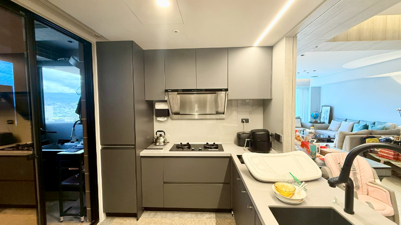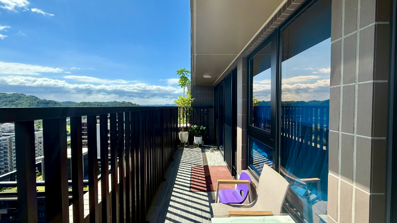 高樓層視野無遮蔽,山景河景一次擁有,邊間三面採光、三主臥設計,約定專用約18.11坪露台,破千萬裝潢,有傭人房