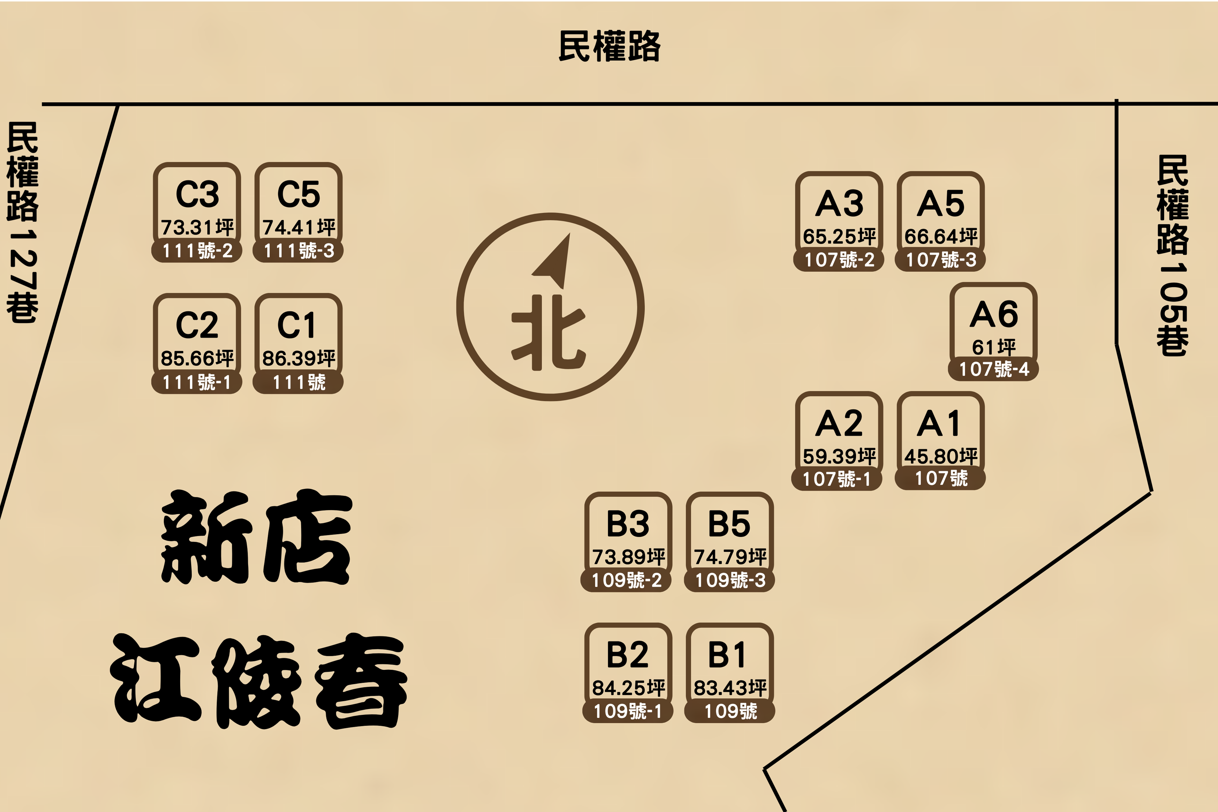 江陵春座落於新北市新店區民權路107~109號,地點位於成熟商圈中,鄰近大坪林捷運站(步行約6至7分鐘),位置極為優越。基地約2577.97坪,僅規劃三棟27層(地下B4F)鋼骨大樓,共329戶,主力房型以四房為主,僅部分A棟戶型為三房。自200年6完工以來,江陵】憑藉出眾的建築設計、公設比(約30%)與優異的物業服務管理,持續贏得在地人讚賞,並藉由高樓層遠眺河景、101、七張與區公所等景致,營造出獨特且開闊的都市居住品味。