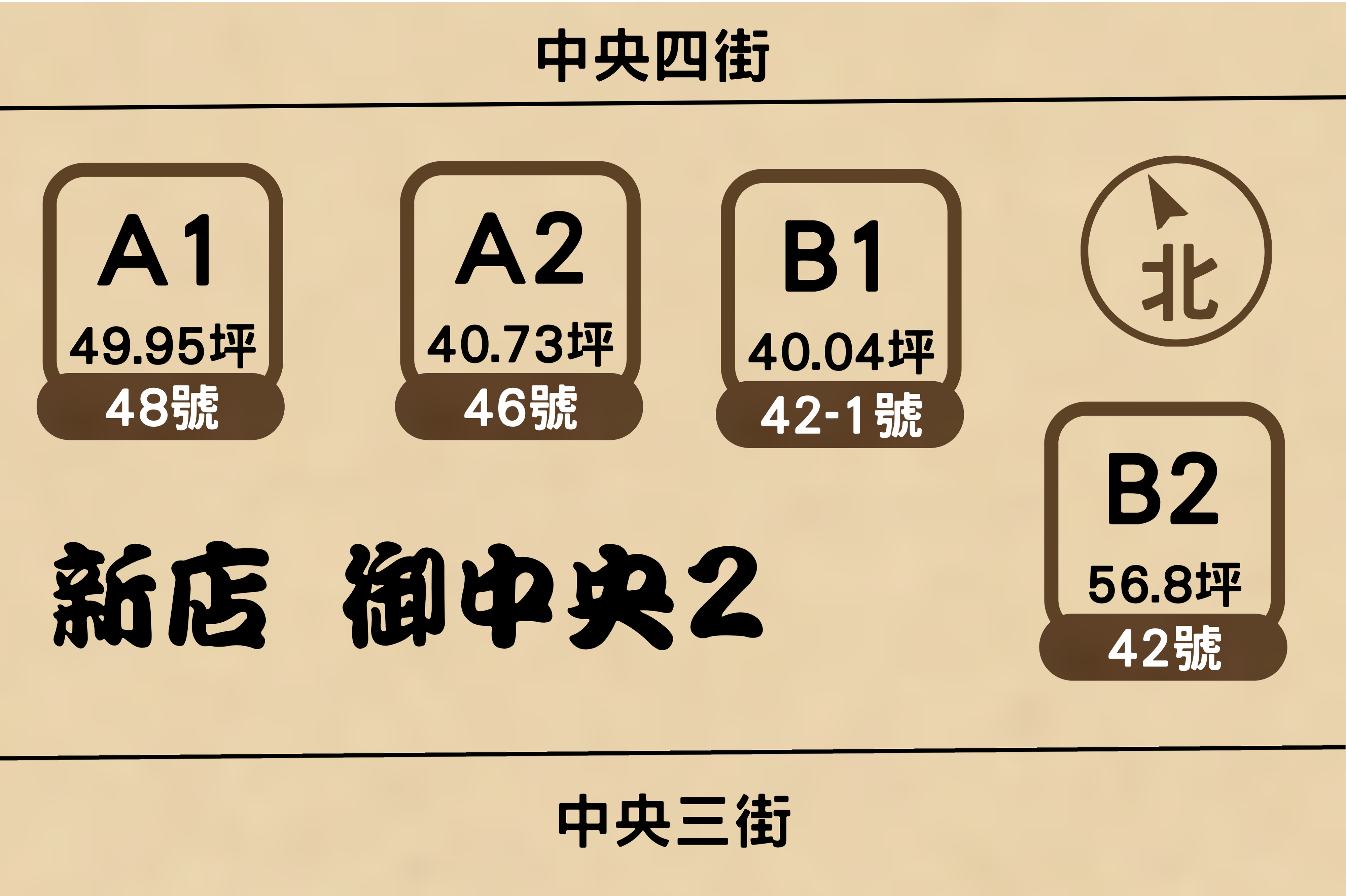 御中央 II 採用現代設計手法,大廳室內高度達7.2米,相較於標準層3.5米的高度,營造出寬敞明亮的空間感。公設區設置氣派水池,長度達8米6,夜晚從一樓休憩區眺望更顯獨特氛圍。整體戶型規劃上,一層配置四戶,提供40、50及56坪三種選擇,其中A1與B1戶正對中央四街,5樓以上即可望見中央五街景致;而B2戶則同時面向中央三街與中央四街,呈現多元視野。