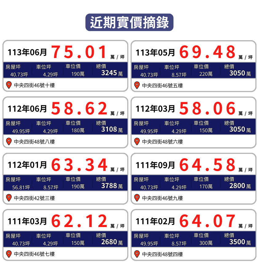 空間功能規劃上,建案設計重視住戶生活便利與安全。人車出入口採分離設計,大門位於中央四街,住戶與車輛進出皆依此進行,而中央三街另設獨立門戶供地主戶使用。車位均為倉儲式機械車位,面寬達6米,即便駕車技術普通亦能輕鬆停車。精細的戶型與公共空間配置,充分展現出設計者對居住品質與細節的用心追求。
