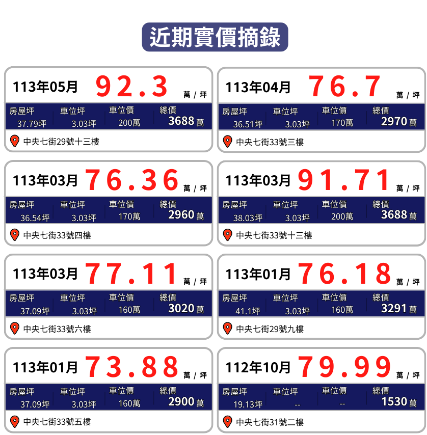 「鈞豐御寶」位於新北市新店區中央七街33號,隱身於寧靜的中央新村,為都更改建的純住宅建案。社區規模精緻,基地面積184.43坪,規劃地上13層、地下2層,共29戶住家,戶戶皆附設車位,車位配比達1:1.24。建築設計融合現代質感與典雅風格,強調建築安全、節能設計與生活便利性。鄰近小碧潭捷運站與京站時尚廣場,擁有完善的交通與商業機能,兼顧居住品質與日常需求。
